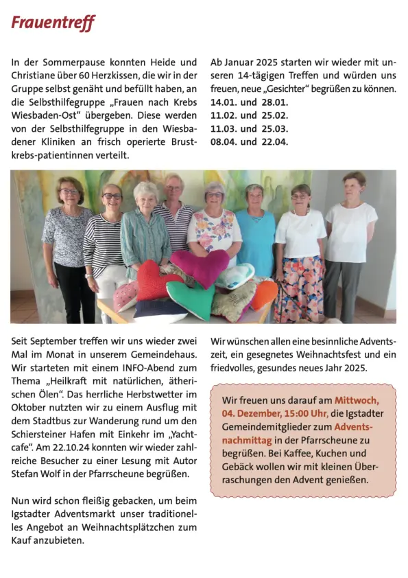 Kontakte: Margarete Döring, Tel.: 0611-98812188, Heide Leinweber, Tel.: 0611-50 17 19