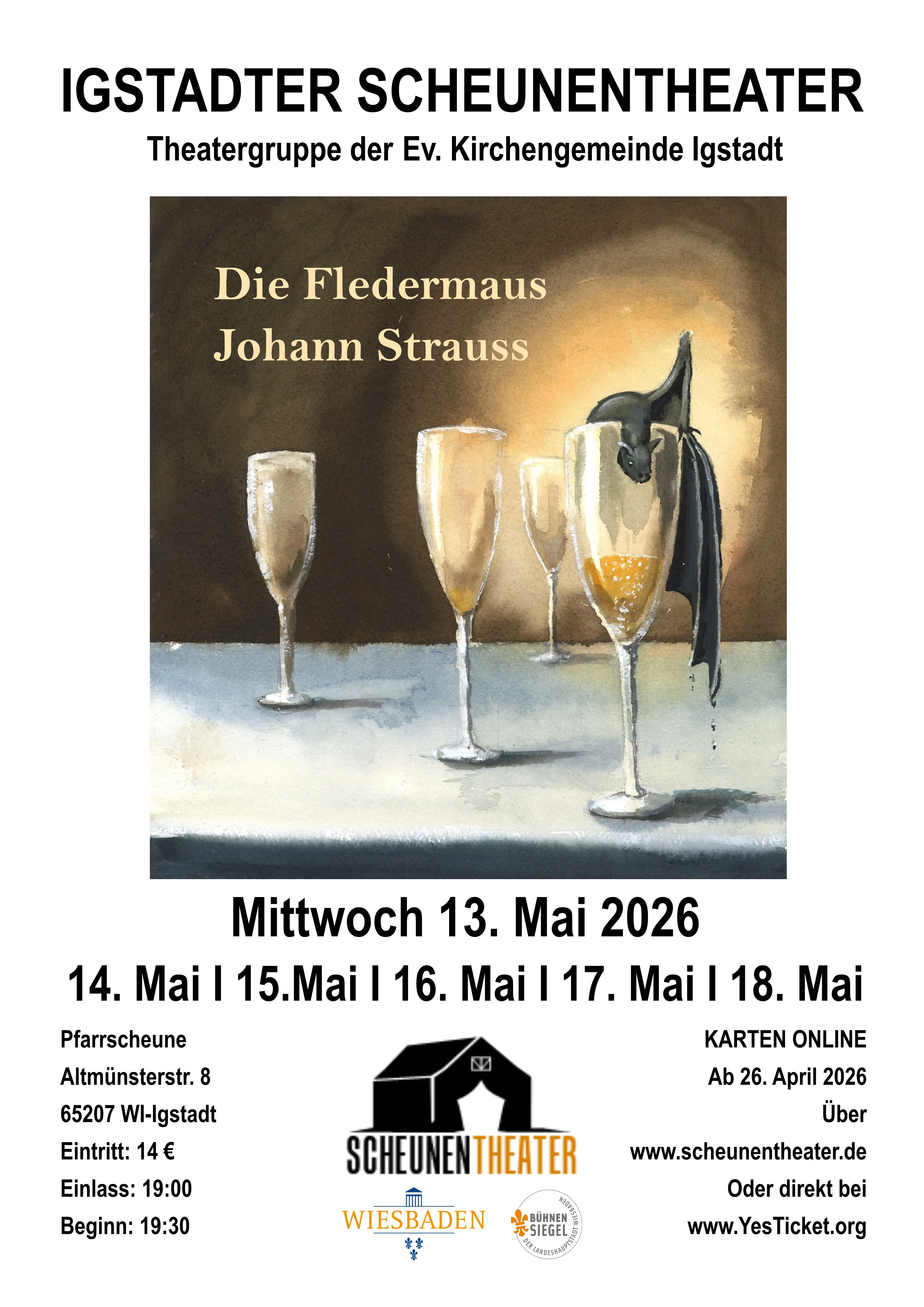 Im Jahr 2015 erhielt das Scheunentheater das Bühnensiegel der Landeshauptstadt Wiesbaden. Der Bericht über das Igstadter Scheunentheater, der anläßlich der Visitation unserer Gemeinde durch das Dekanant Wiesbaden im Jahr 2012 entstanden ist, schildert anschaulich den Werdegang und die Produktionen der jungen und jung gebliebenen Gruppe, die pro Jahr zwei Produktionen zur Aufführung bringt. Weitere interessante Informationen finden sich auf der eigenen Homepage des Scheunentheaters.